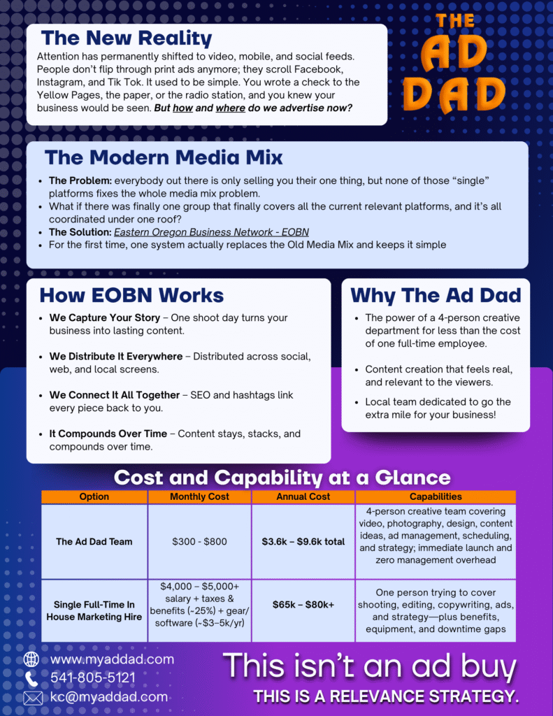 We deliver compelling social media advertisements that capture attention, reflect your brand, and effectively reach your ideal audience. This content builds off of itstself and remains online. (Facebook, Instagram, TikTok, YouTube)